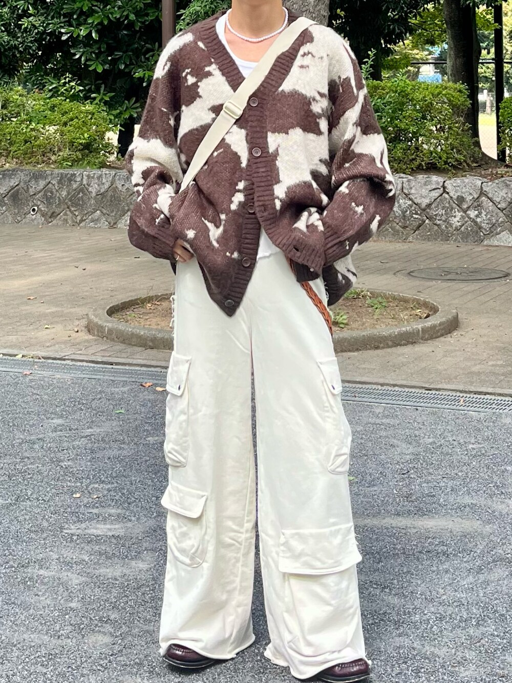 かわいい柄ニット🐮 白パンと合わせてゆるくスタイリングしてます