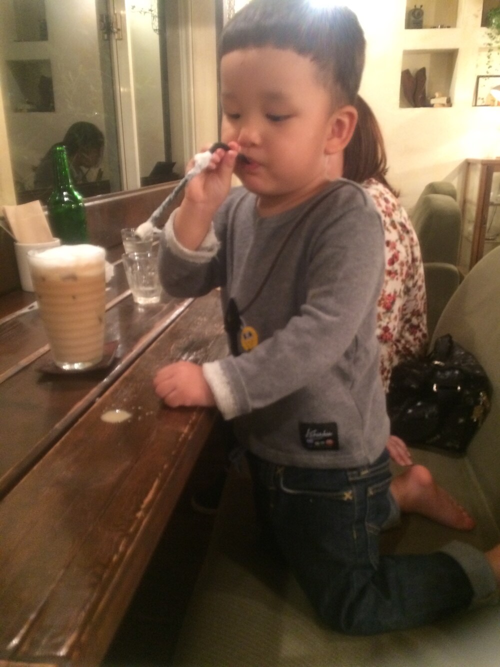 カフェでカフェラテ♡ WEAR始めてみたものの、 やり方イマイチわからず。 そして、何よりみんなみたいに オシャレなアングルや背景で全体写真が撮れないっ(ノ_・。)