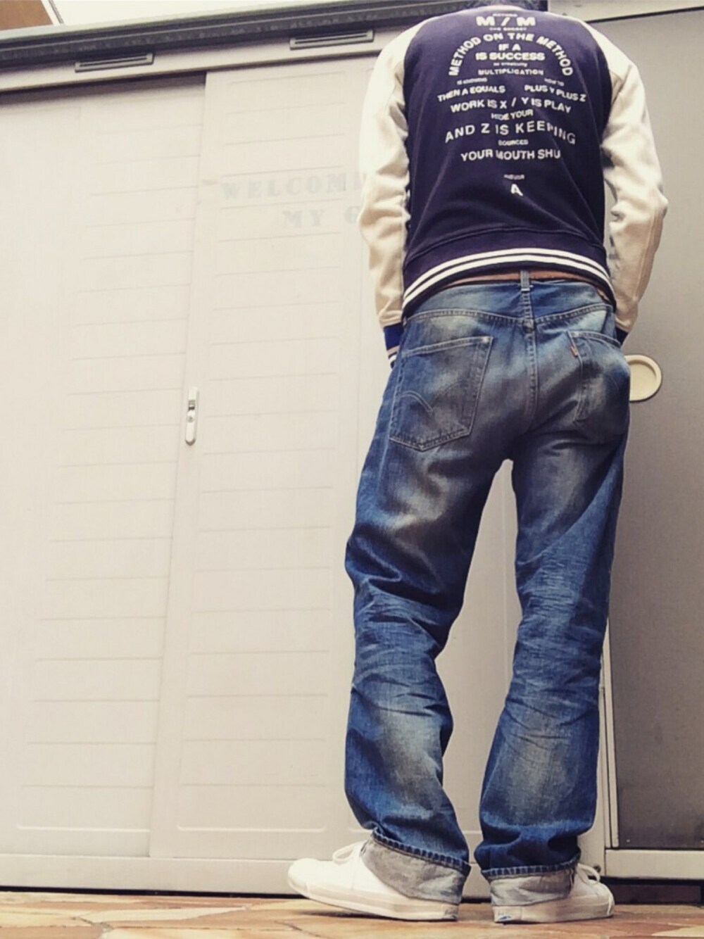 ハマちゃんのスタジャン「スウェットラグランスタジアムジャンパー/シークレットメソッド」を使ったコーディネート