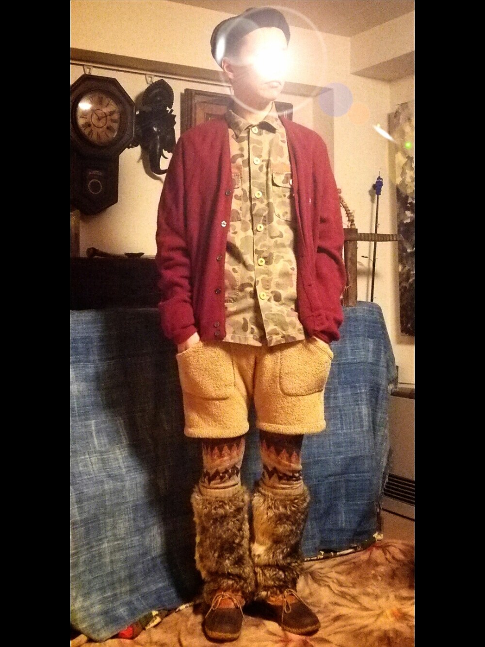 カーディガン:CROCODILE シャツ:WOOD WOOD パンツ:Vaporize レギンス:KAPITAL シューズ:L.L.Bean 帽子:BEAMS