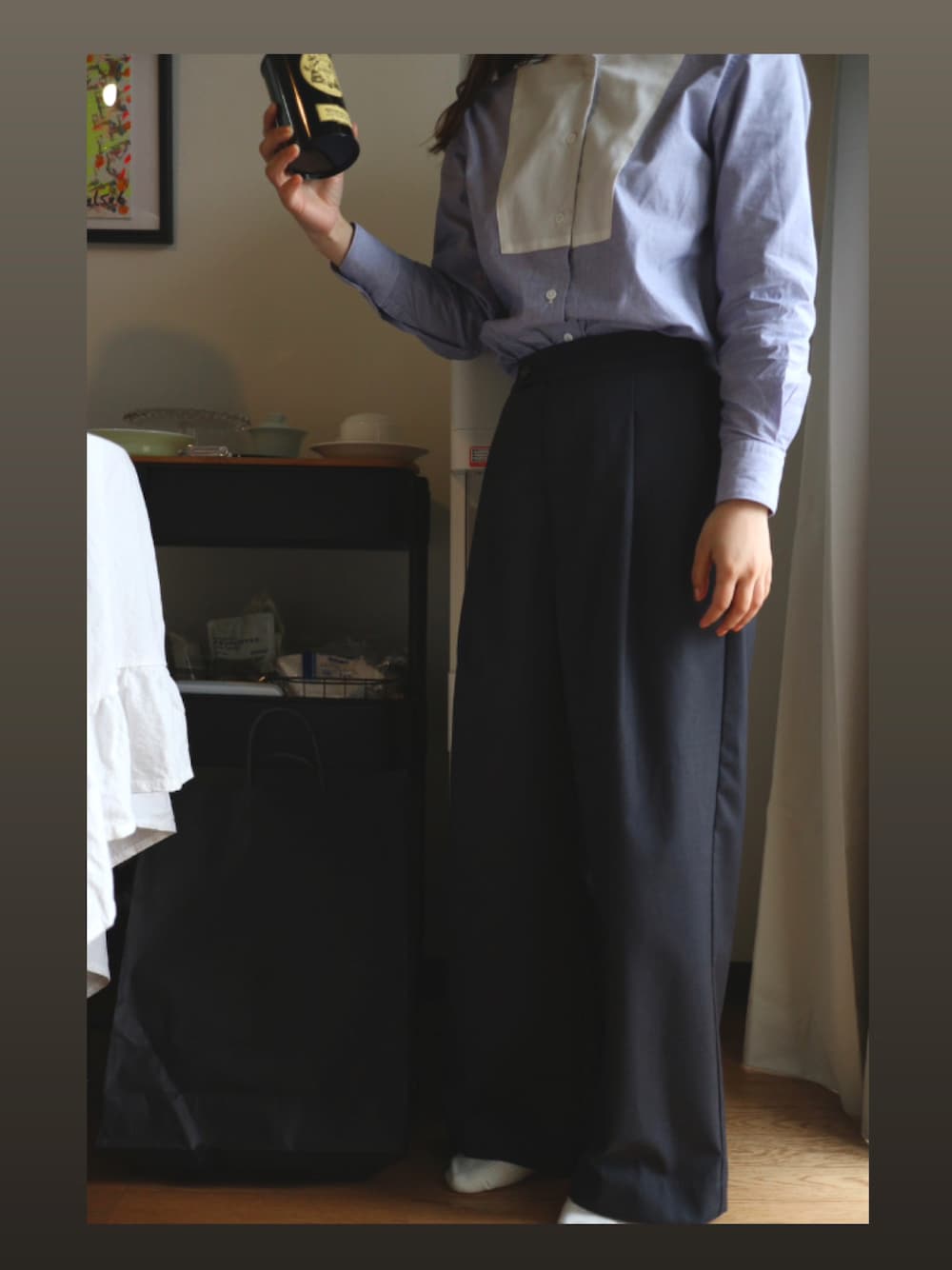 神戸のオーダーメイドシャツ屋さんで作ってもらったシャツ🥰 FUDGEに載ってたどこのか分からないシャツがどうしても欲しくて。 播州織りのサラサラ生地。 今もう売ってないかもだけど、このパンツのチャコールグレーの色味が何でも合いすぎてヘビロテしてる🥰 グレーより大人っぽく見える気がする。