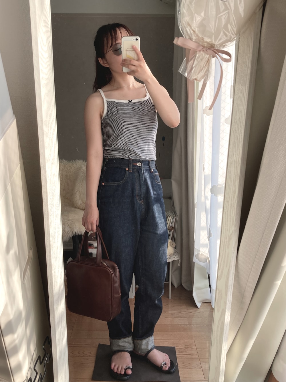 勿体なくて着れないプチバトーのキャミ 猛暑でここぞとばかりに。 紐とリボンが可愛すぎるな