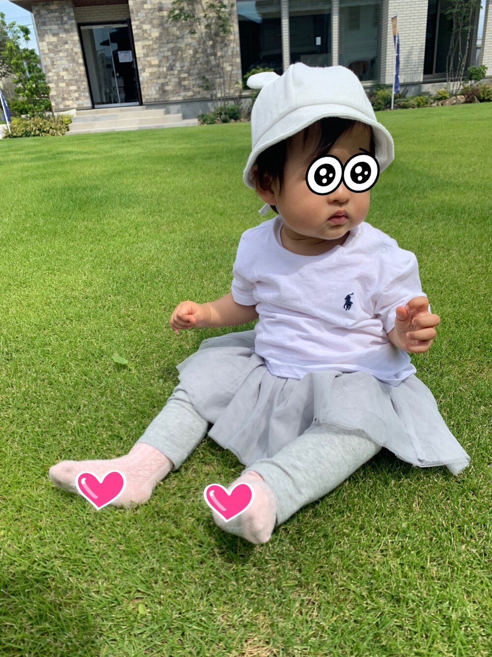 つたい歩きが上手になってしました🚶♀️ 初めて芝生に座らせてみたら 感触にちょっとビビっていた😂 ファーストシューズを履かせてみたけど やっぱり素足の方が歩きやすいらしい👟