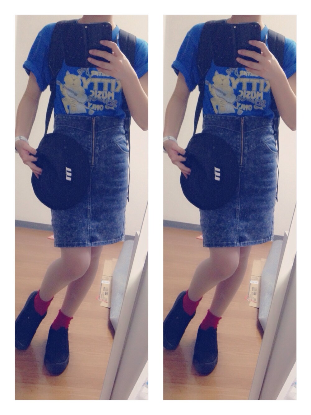 ジーンズタイトスカートにTシャツiN。 キッズ系シンプルコーデ☝︎☆