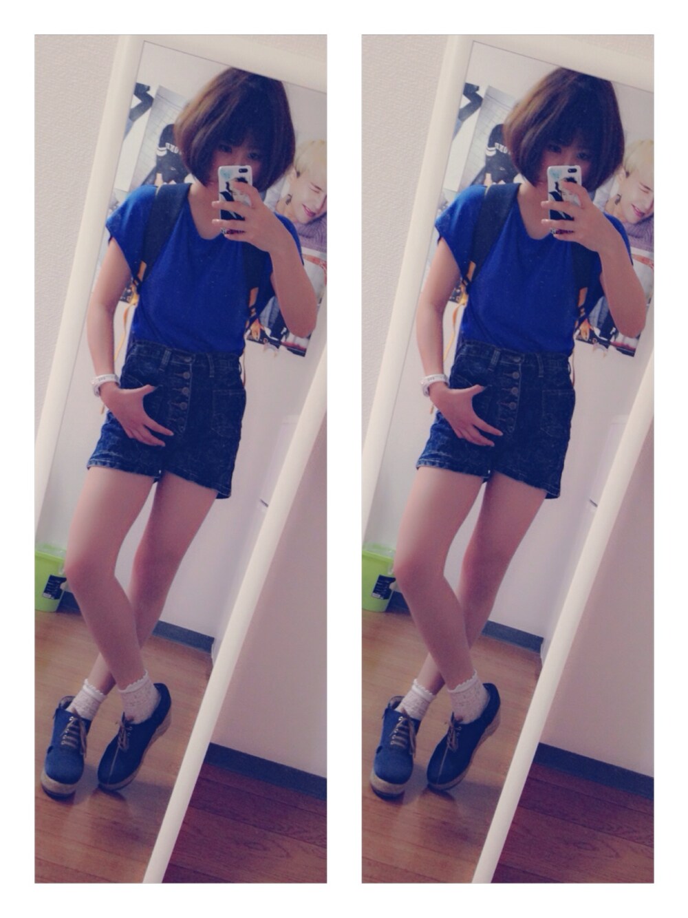 昨日とは真逆な Tシャツ × ショーパンのラフスタイル 韓国人意識(すみません) 今日の大阪雨降るみたい… 傘持ってないぞお ま、大学から家まで3ぷんだから 走って帰るか(^ω^)雨降りませんように