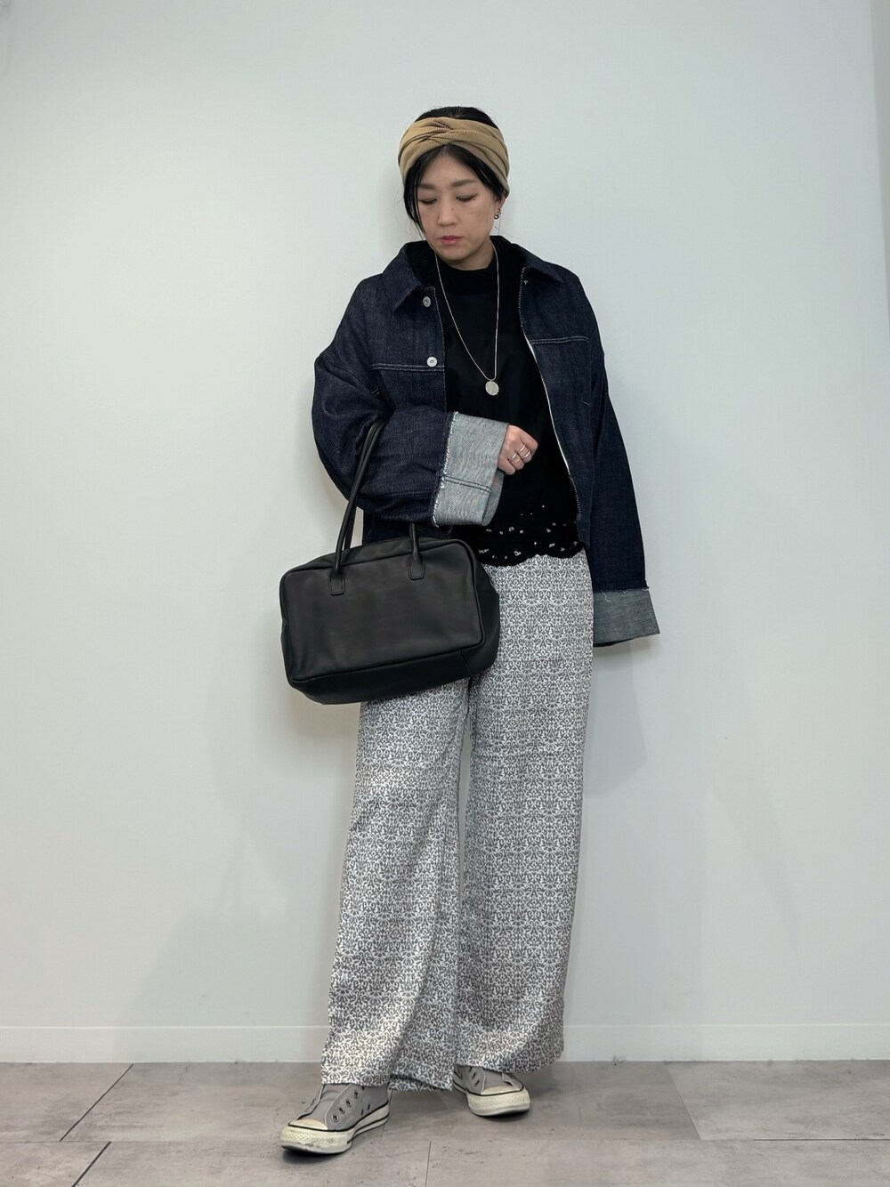 KUROのデニムジャケットが主役です。 レースもののトップスも今の気分です。 ラクなパンツでバランスをとります。