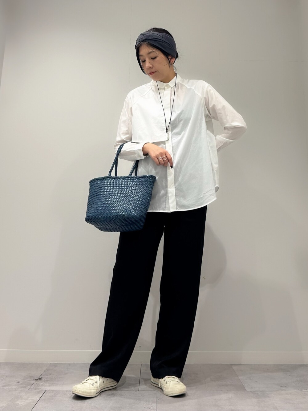 白いシャツが主役です。 でもDRAGONのバッグも主役です。 シンプルに。