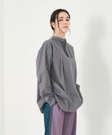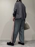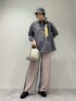 シンプルながらスカーフとキャップでちょっと華やかに。 パンツも前後柄違いでひと癖あるのがかわいいです。