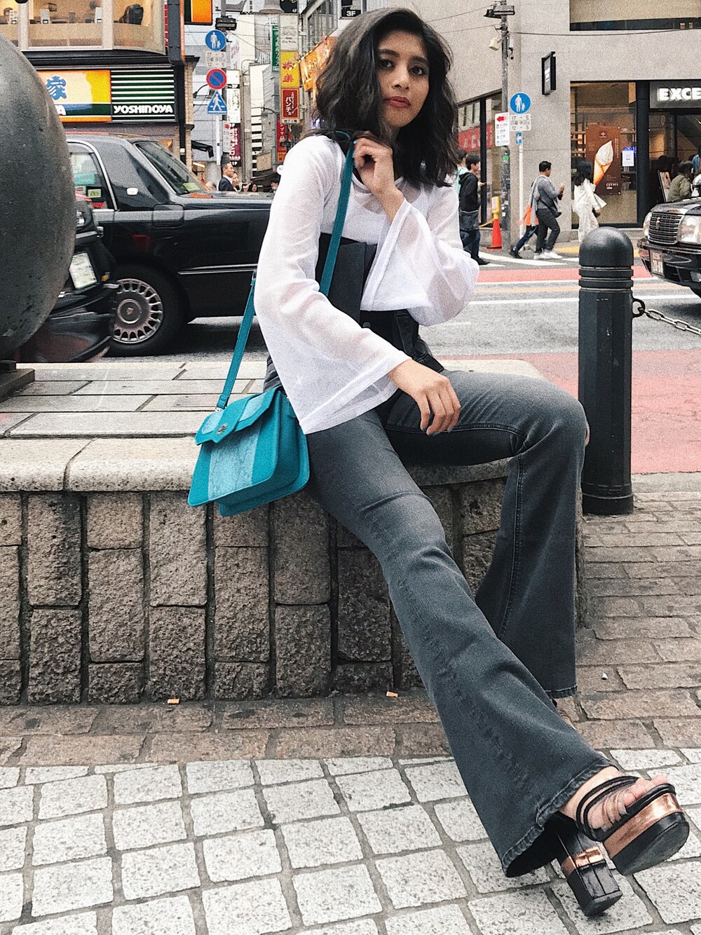大人気のビスチェDENIMオールインワンを使ったコーデ🖤 今の時期はTOPSとレイヤードするのがおすすめです! ブルーのBAGを差し色に💙 Instagram→@haanae_