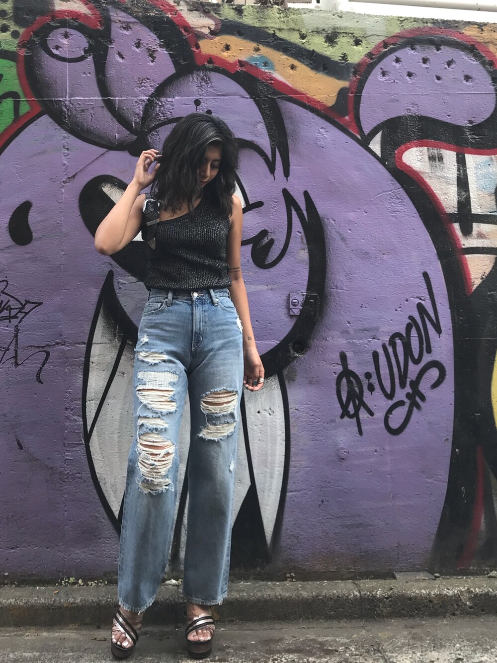 お気に入りのTOPSを使ったコーデ🖤 デニムはシルエットが綺麗なのでぜひ一度お試しください♡ Instagram→@haanae_