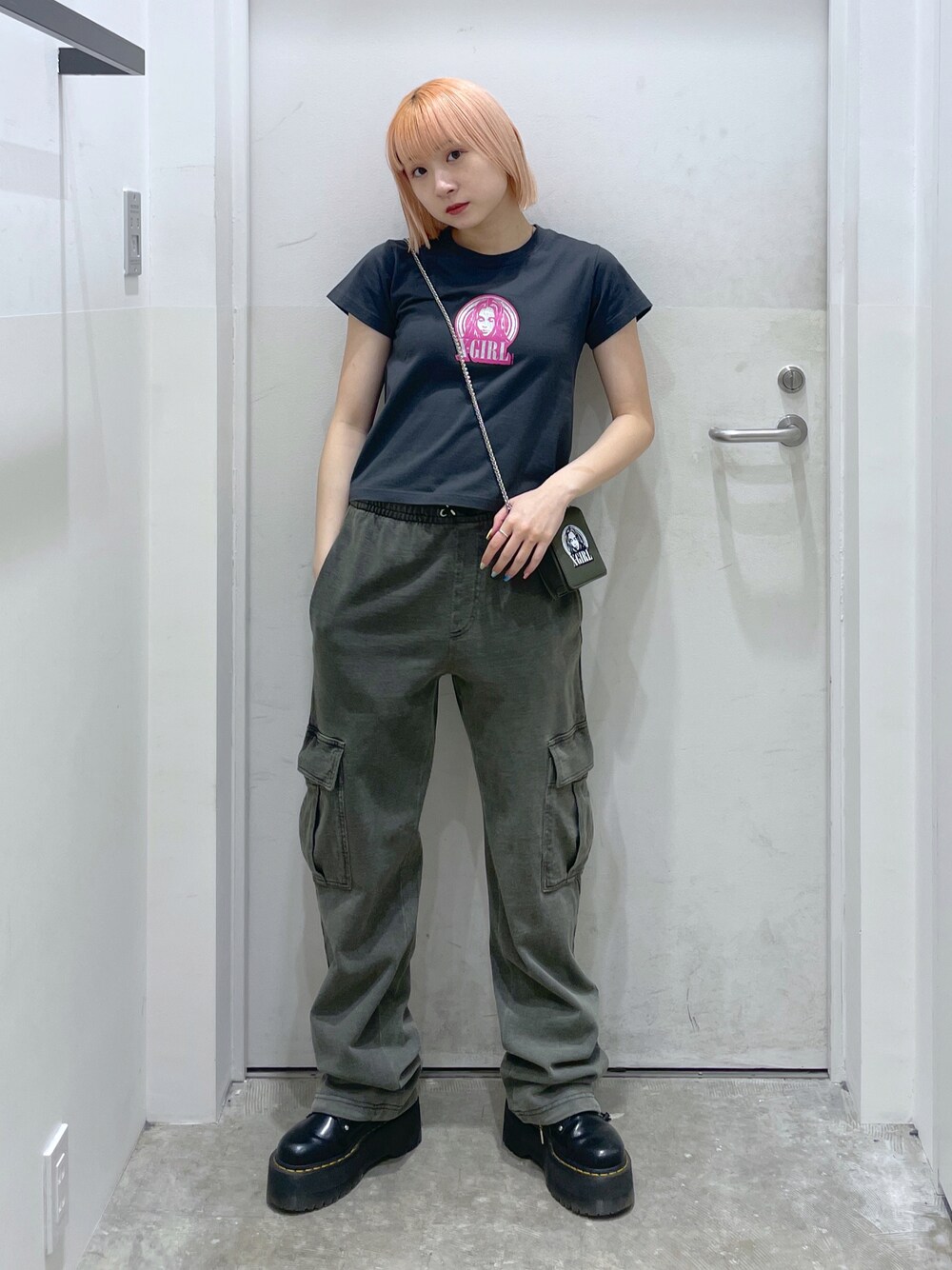 多田花美のTシャツ/カットソー「GLITTER CIRCLE BACKGROUND FACE LOGO S/S BABY TEE」を使ったコーディネート