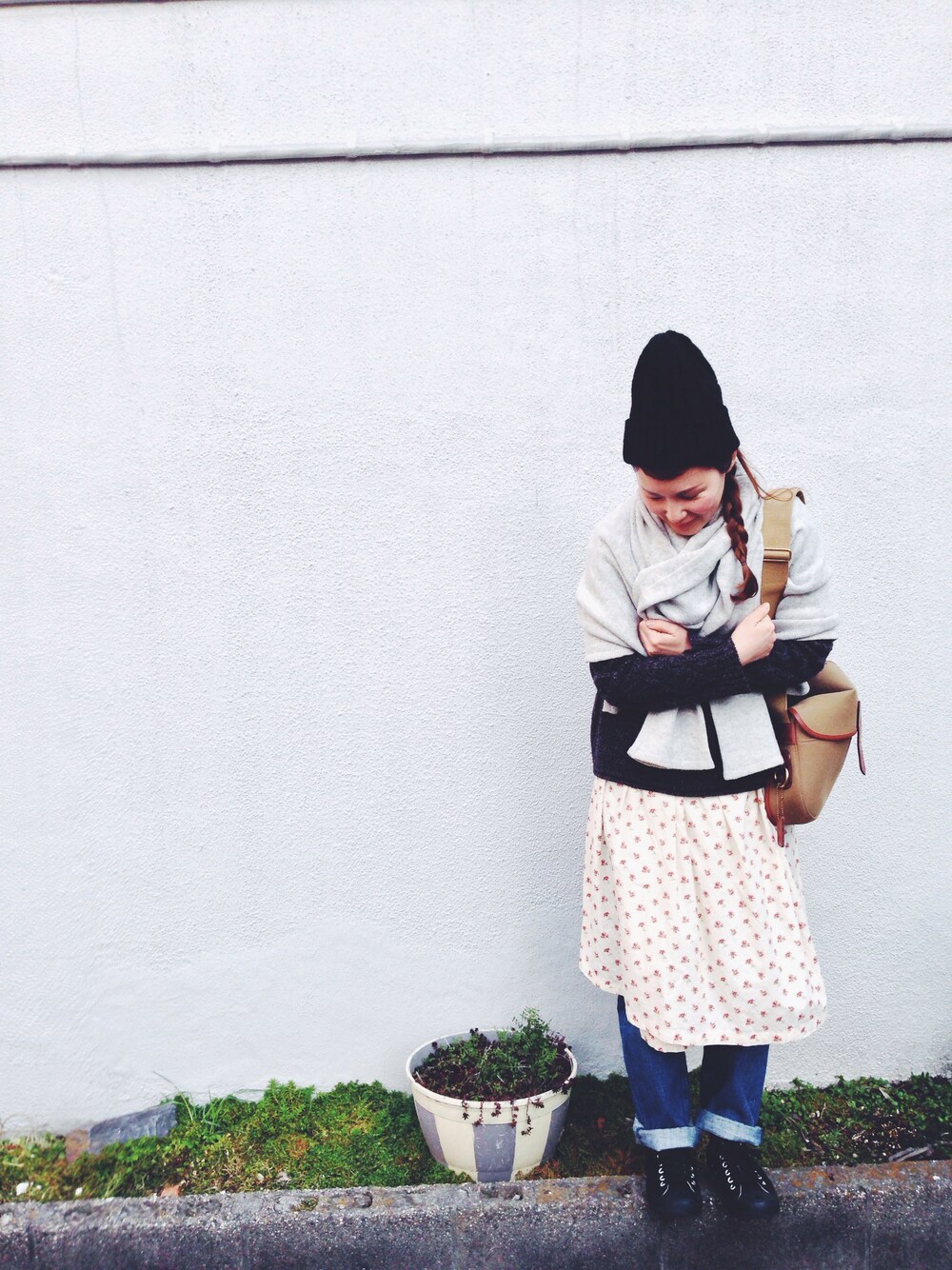 カーディガン:ships セーター:MUJI ワンピース:ブランド不明 デニム:journal standard スニーカー:GU