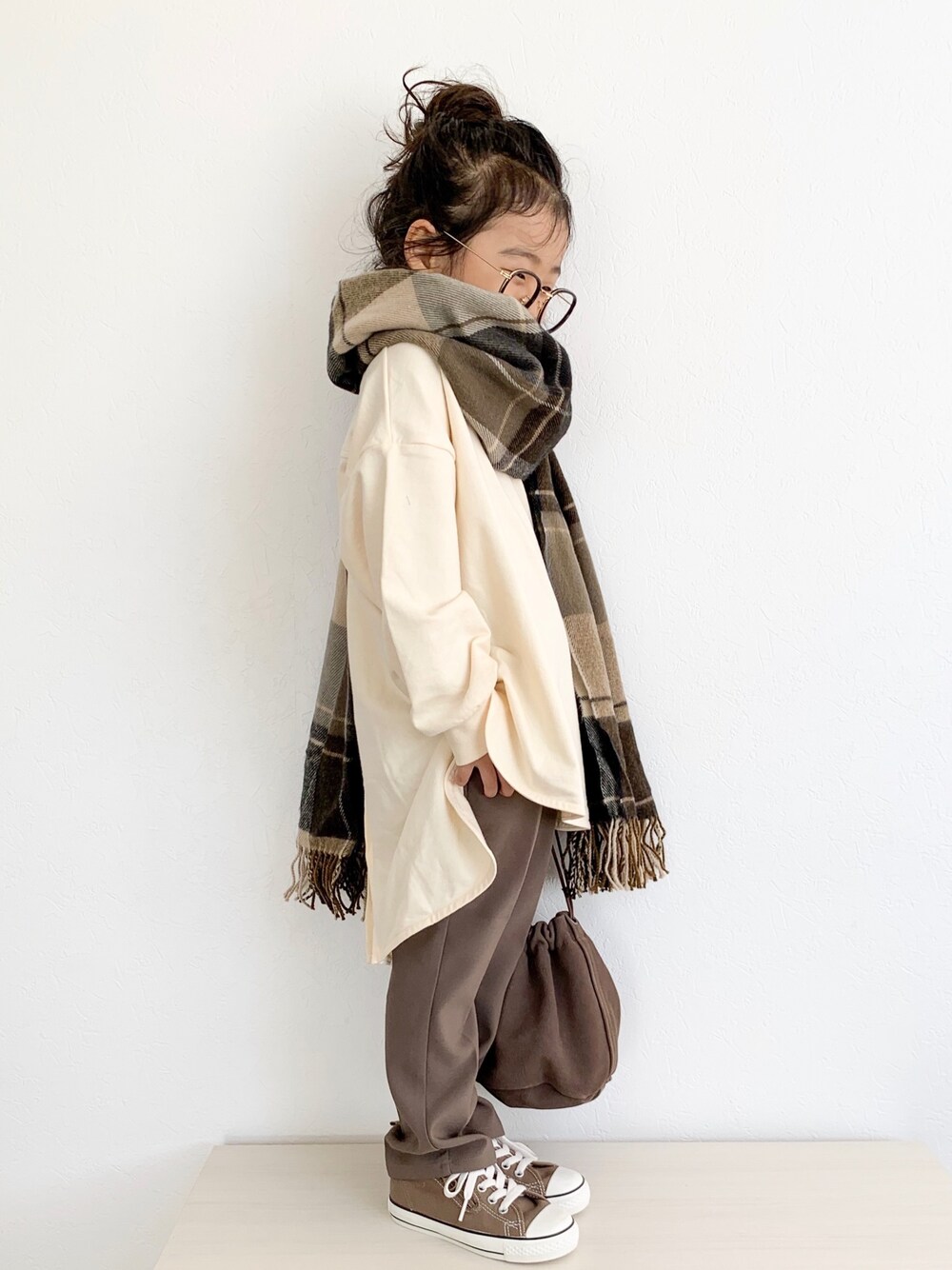 hana*のTシャツ/カットソー「スリットロング丈Tシャツ(80~140cm)」を使ったコーディネート