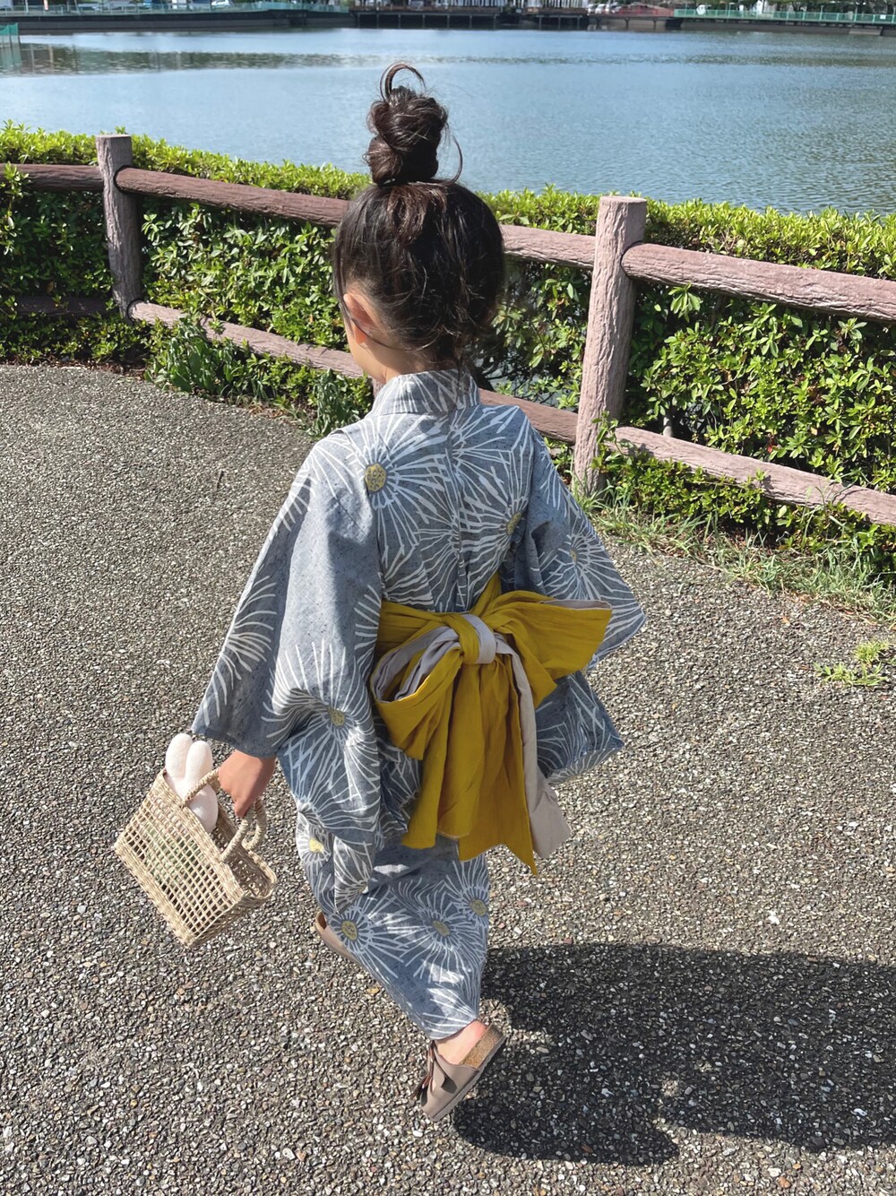 hana*の浴衣「キッズ浴衣3点セット 女の子 utatane×注染工房 kids 日本製注染」を使ったコーディネート