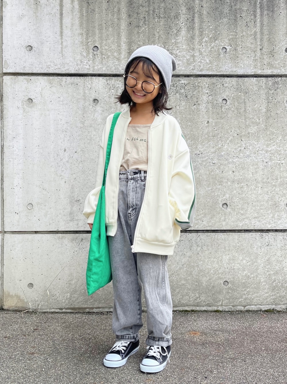hana*のブルゾン「【KIDS】【WEB限定】ダンボールニットライントラックジャケット」を使ったコーディネート