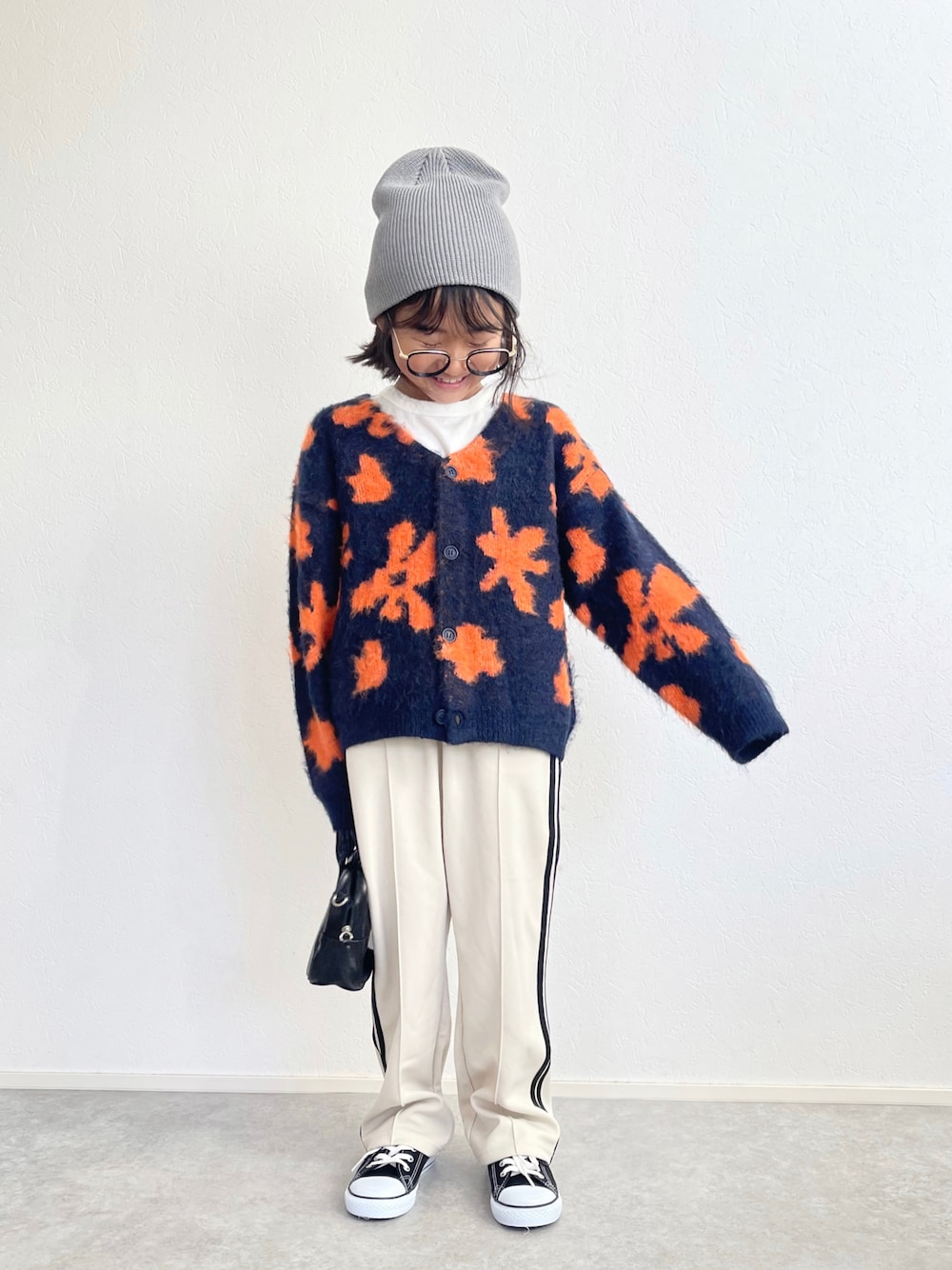 hana*のカーディガン/ボレロ「【WEB限定カラー】【KIDS】アソートジャガードシャギーニットカーディガン」を使ったコーディネート