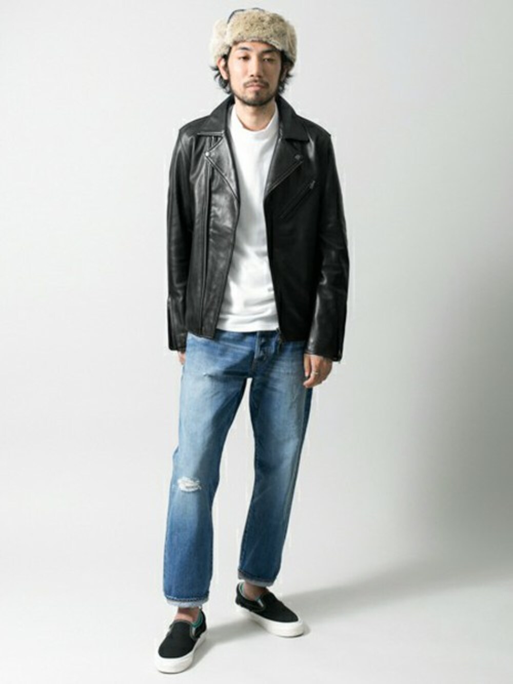 hanadaのライダースジャケット「DOORS Leather Riders Jacket」を使ったコーディネート