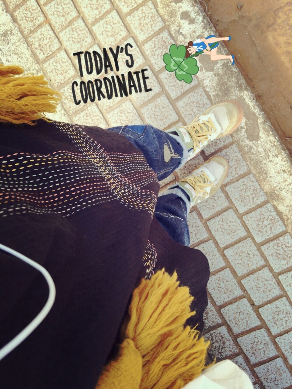 ストール ne-net 靴 NEW BALANCE ストールは辛子色がアクセントで、ライオンの刺繍が入ってます( ^ω^ )お気に入り♩