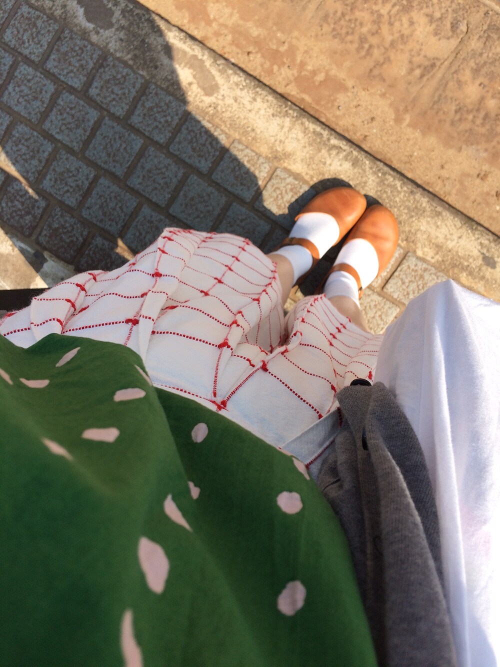 やっぱり色味が欲しい!好きな緑を(*^_^*) 靴下 、カーディガンはズッカ