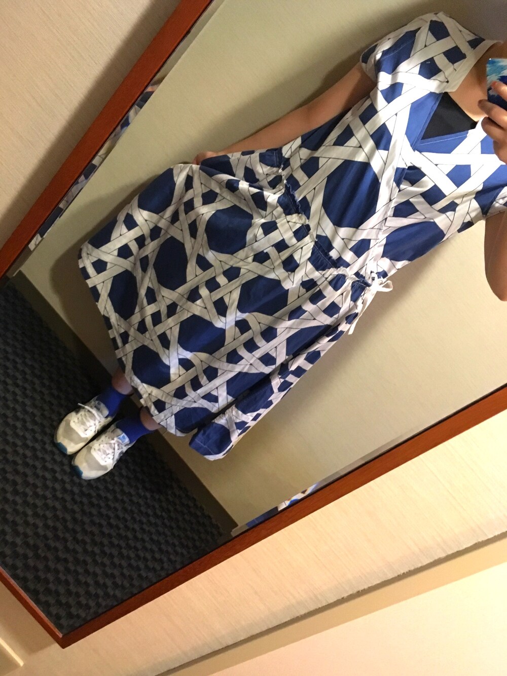 ブルー系のワンピースを着用したレディースの夏コーディネートの1枚目の写真