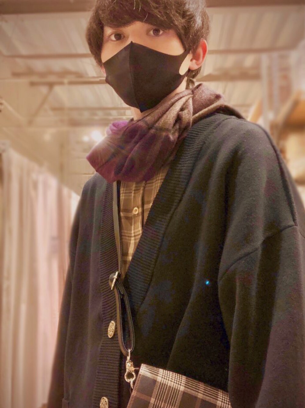 見てくれてありがとうございます🙇♂️🙇♂️ 見切れちゃったんですけどパンツも黒で、バックとインナーをベージュにしてワインレッドのマフラーでまとめました!! 僕的には可愛いとかっこいいが両立できたお気に入りコーデです!ADRERのカーディガン良良。。、