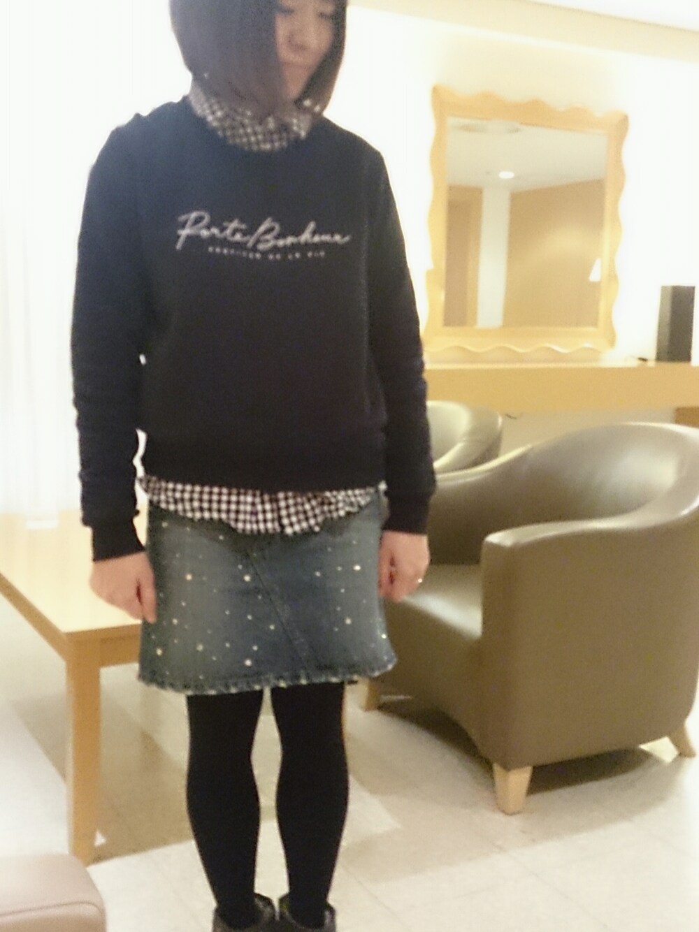 ふさこのシャツ/ブラウス「・Bギンガムチェック長袖シャツ」を使ったコーディネート