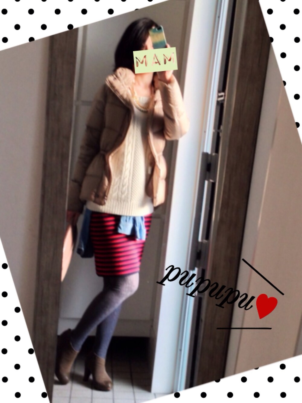 幼稚園お見送りスタイルから、 同じカラータイツで、 子供達とお出掛けスタイルに。。。 靴も長靴から、ショートブーティにしてみた〜