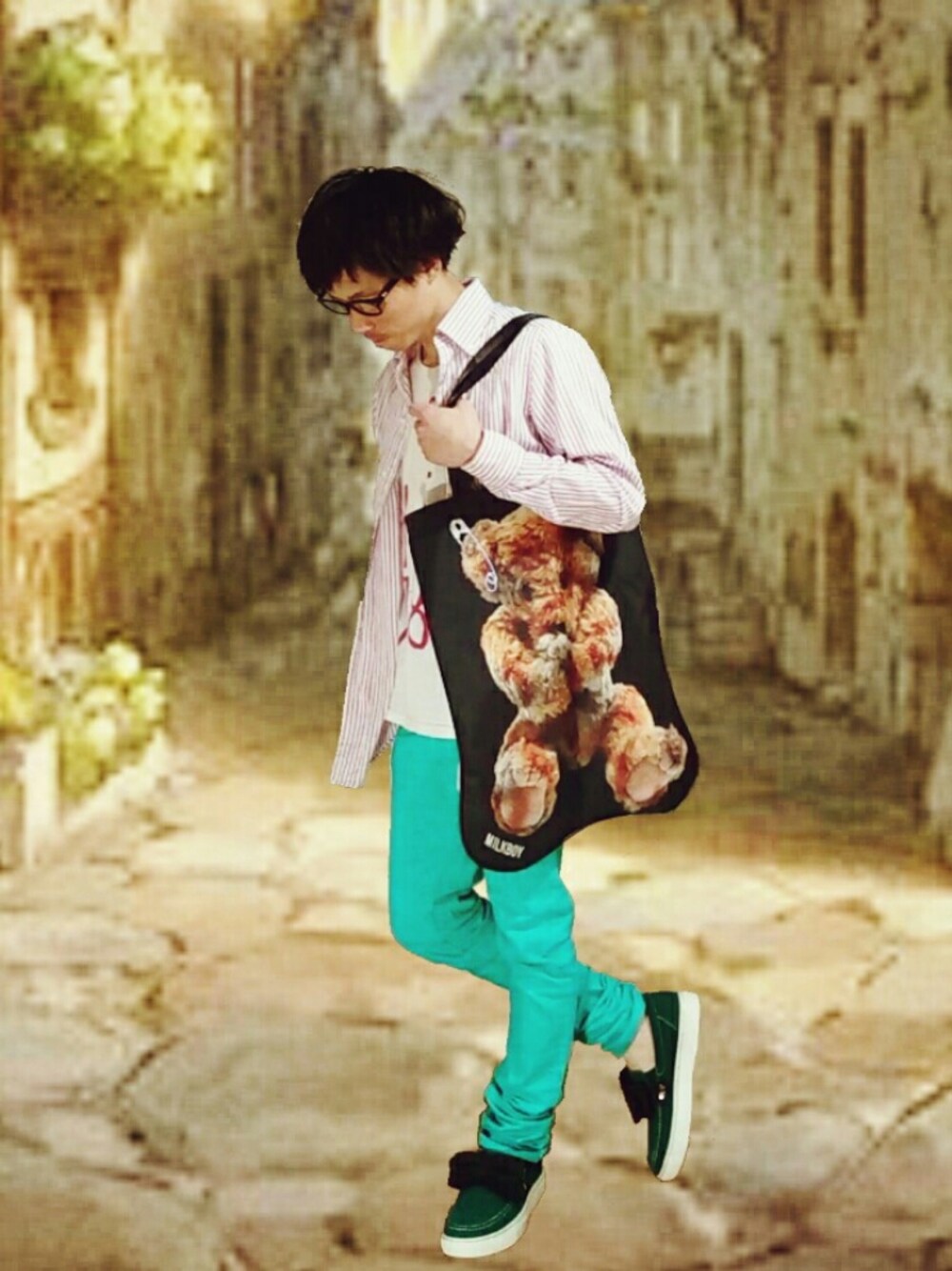 また眩しいグリーンのスキニー履いてみました(^o^)/これは思いのほか使い勝手が良いので今後ヘビロテしそうです('👅') MILKBOYのクマさん目立ちますね~(๑・㉨・๑) 雨続きでじとじとしますがもうすぐGWですね♪あと2日ガンバローっと(''∇^d