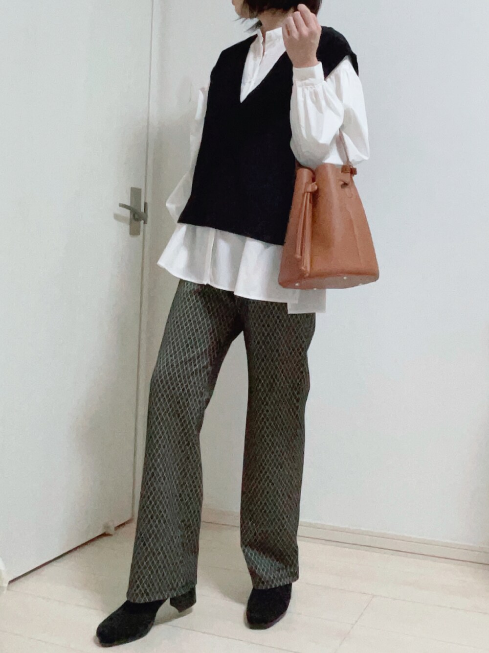 ハナコユキのベスト「フカVネックカットベスト 272692」を使ったコーディネート