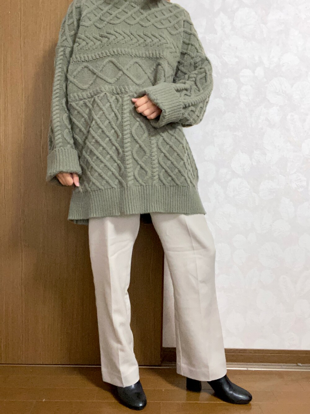 はるのニット/セーター「ランダムケーブルオーバーニット」を使ったコーディネート