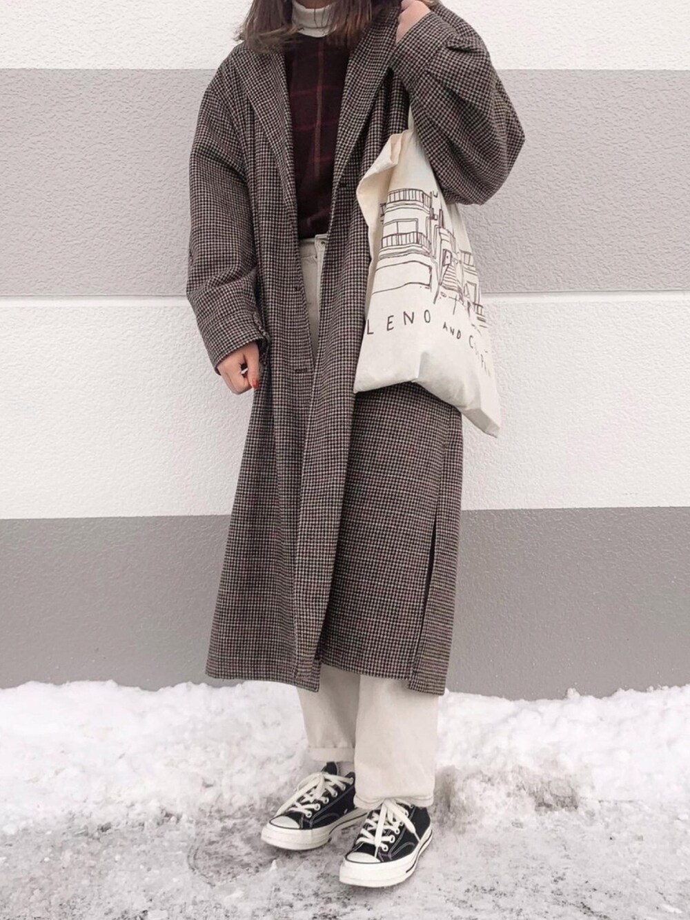 おはなのその他アウター「チェック柄ロングコート079-7272」を使ったコーディネート