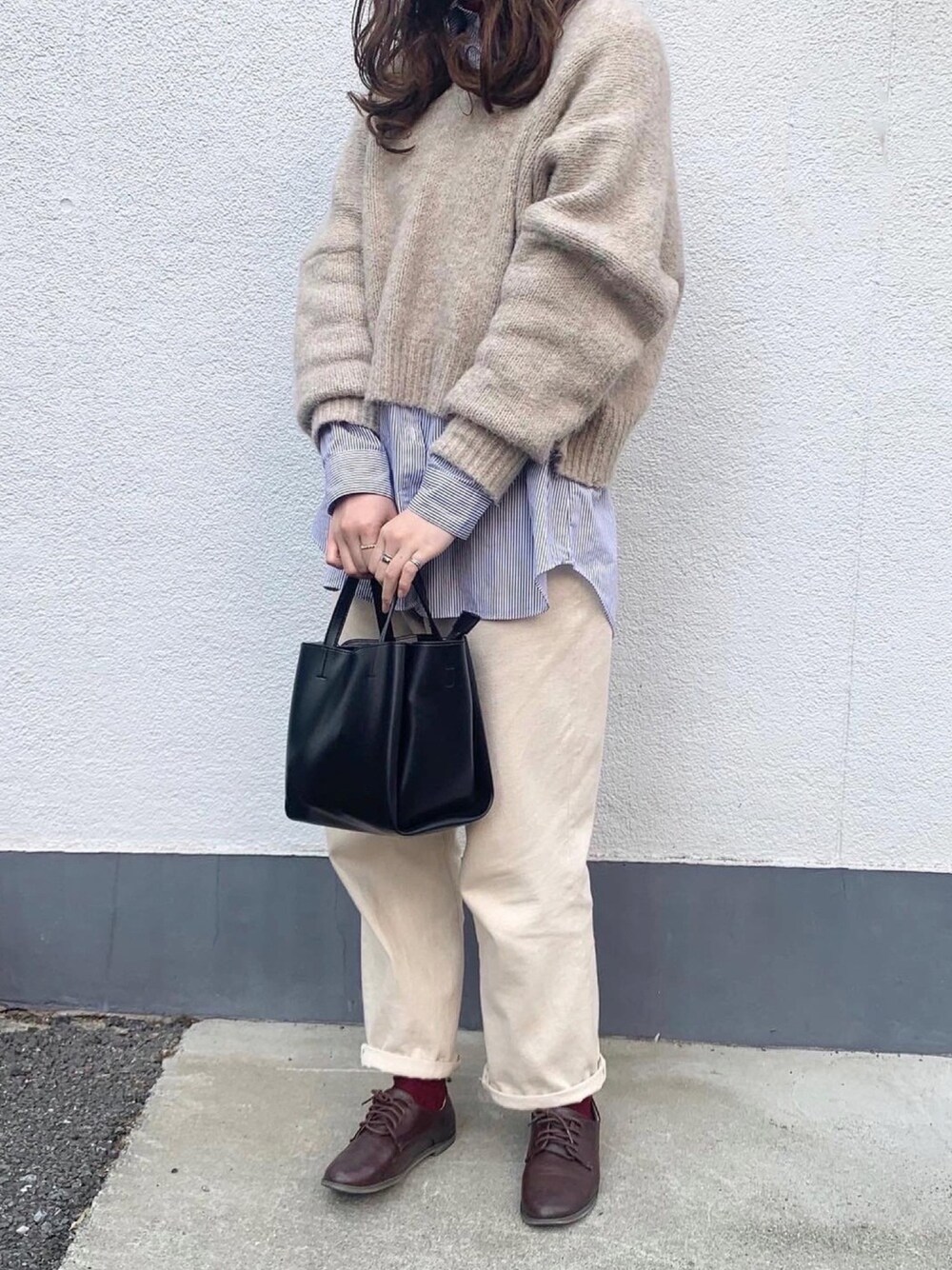 見に来て頂きありがとうございます𓂅 レイヤードしてキレイめコーデ!! ボリュームあるニットにストライプシャツが マッチして可愛すぎました〜◎ 差し色で赤の靴下見えてるのがまたいい! 白デニムもいい仕事してくれてます♡ インスタもやってるから覗いて見てね ▷▶︎ flower__530