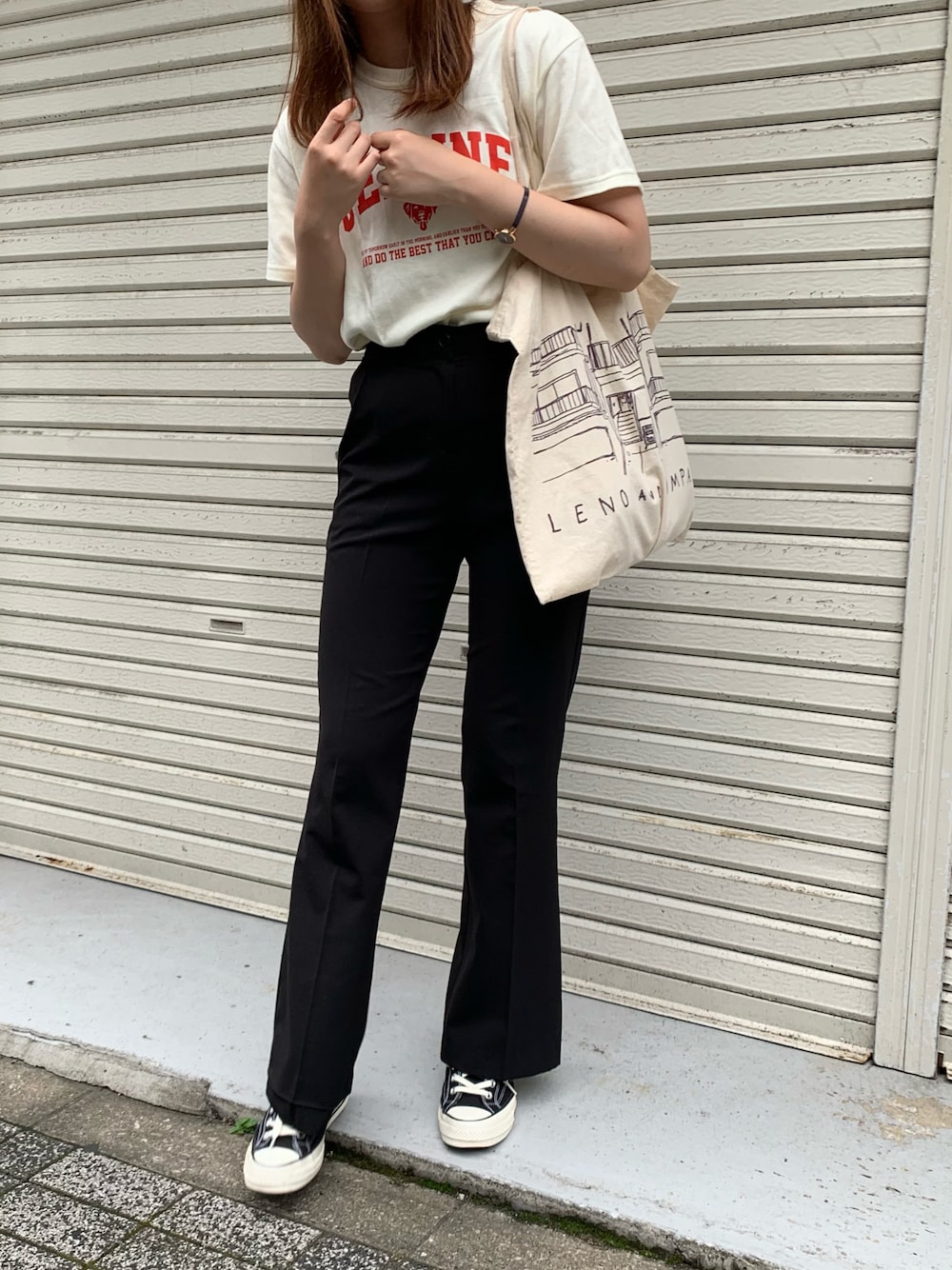 おはようございます☀️ いつも見てくれてありがとうございますっ!! jeanneのロゴTシャツにスラックス。 足元はct70でカジュアルしました!! Tシャツの生地がモチモチで最高です◎ カジュアルで揃えたい時はバッグは 断トツでトートだよね〜可愛い。 インスタもやってます↓ @flower__530 🌼