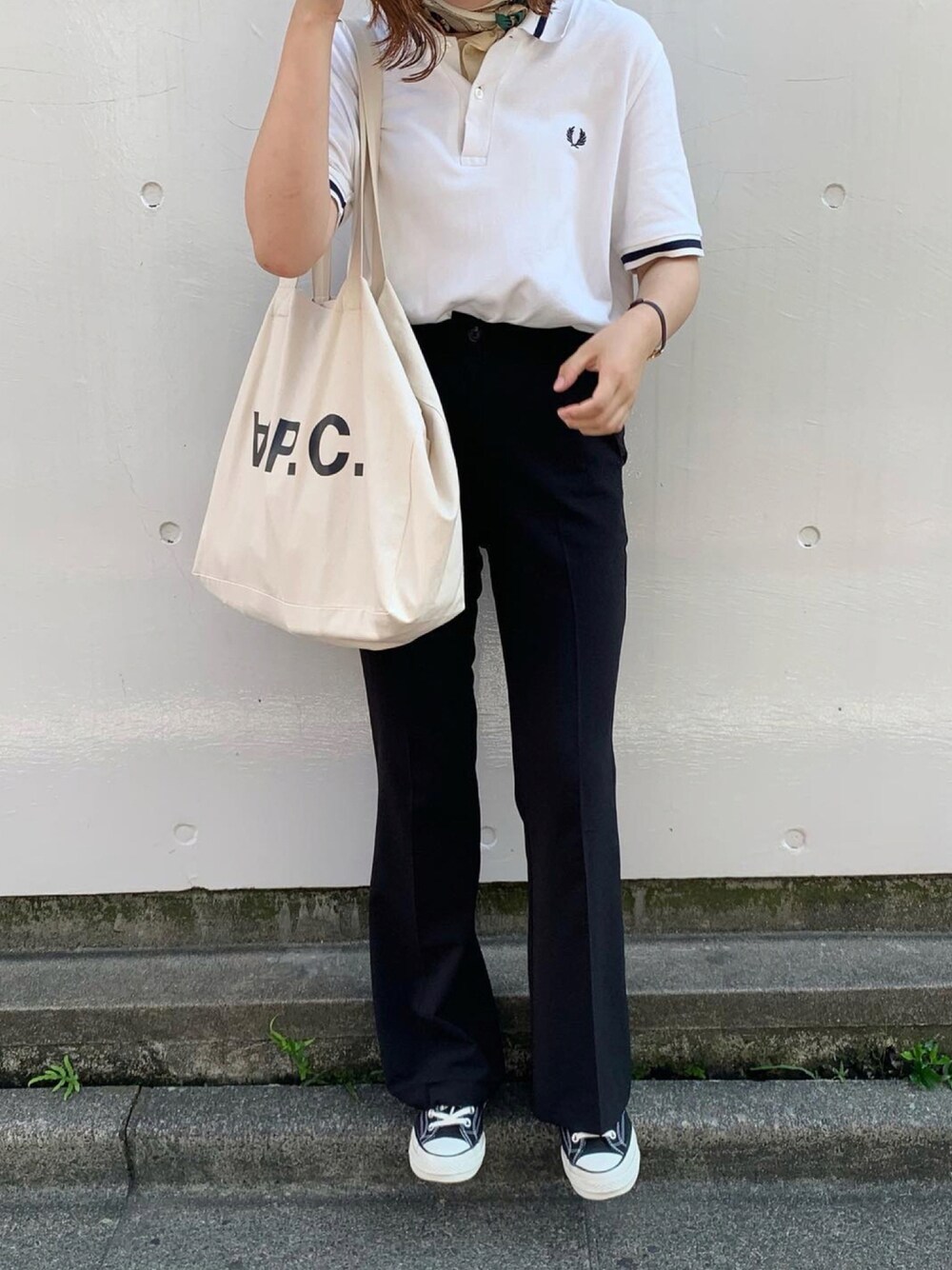 おはようございます☀️ いつも見てくれてありがとうございますっ!! fredperryのポロにスラックスの シンプルなスタイルにチラ見せの スカーフがいい味出てます〜◎ やっぱこのポロのワッペン可愛い。 シンプルなときは目立って可愛い♡ インスタもやってます↓ @flower__530 🌼
