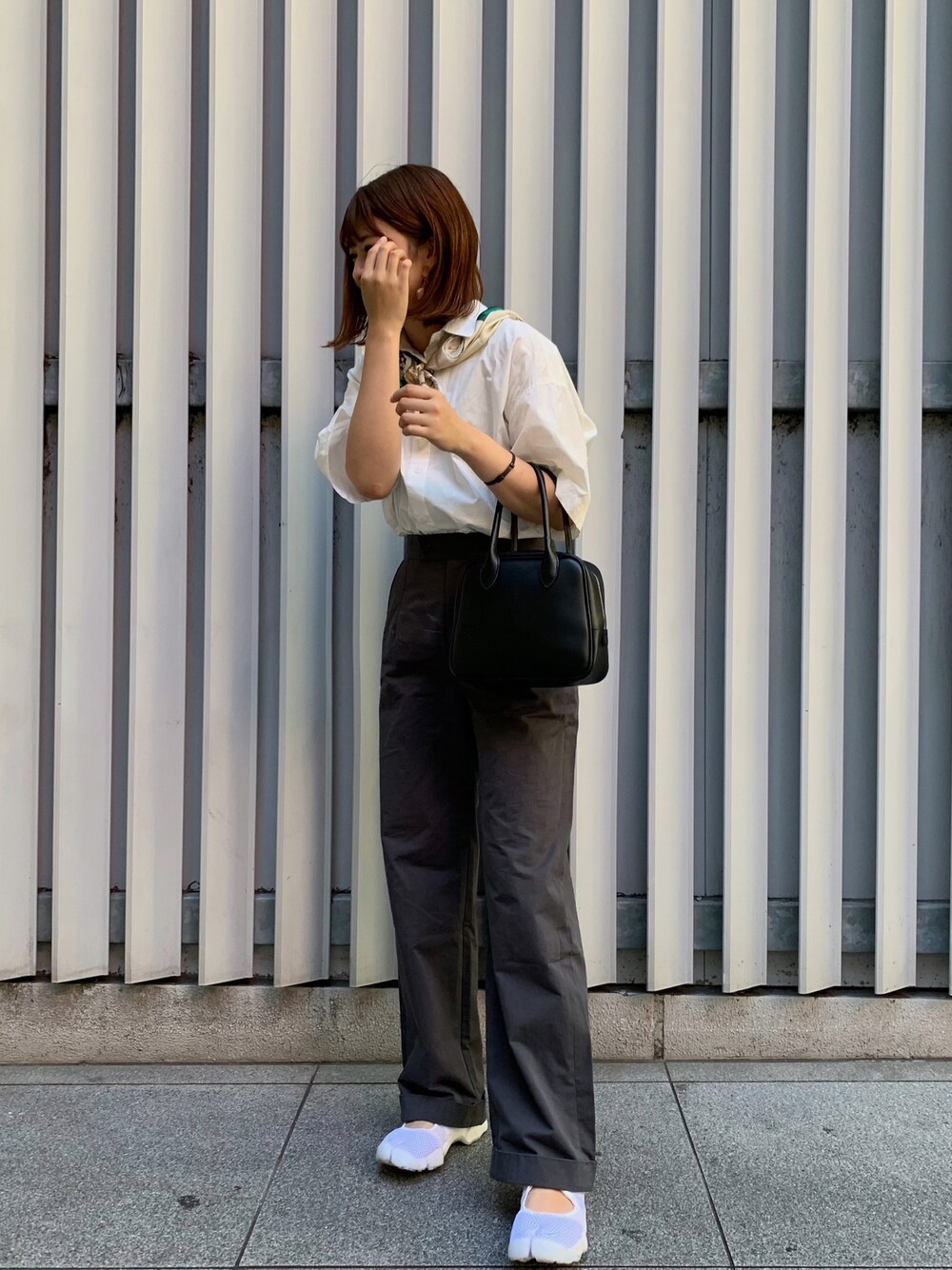 おはようございます☀️ いつも見てくれてありがとうございますっ!! シャツにシックな色味のパンツ合わせで 大人ぽく。首元にスカーフを巻くことで シンプルコーデが一層際立ちます◎ 足元はエアリフトでカジュアルに!! シンプルコーデは間違いないです! インスタもやってます↓ @flower__530 🌼