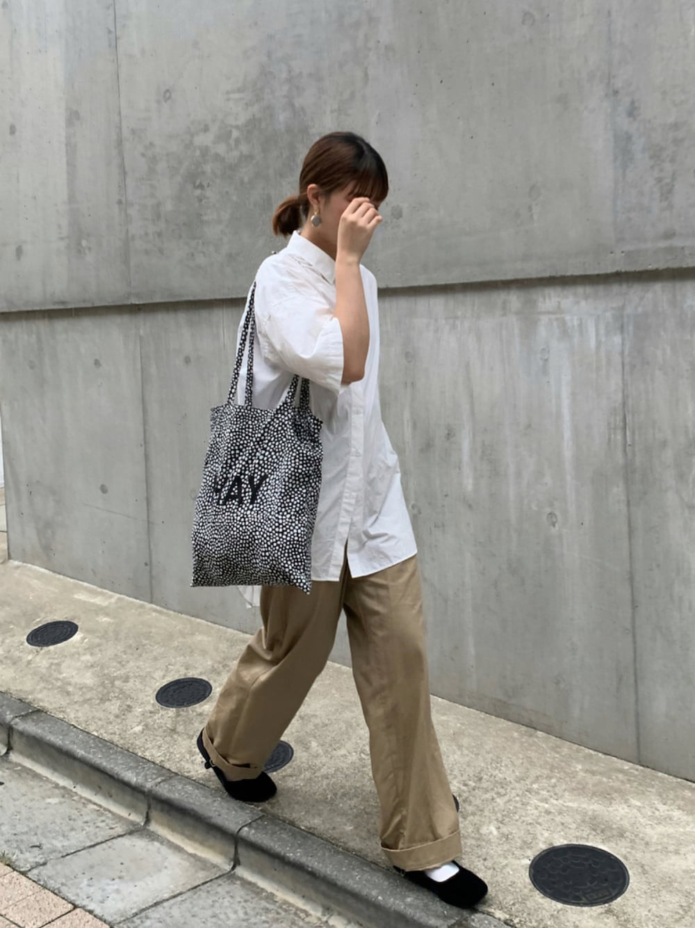 おはようございます☀️ いつも見てくれてありがとうございますっ!! 白シャツにチノの安定のカラーに hayのトートとカンフーシューズの 黒使いで大人っぽく◎ オーバーサイズの時はタックイン じゃなくてそのまま着てサイズ感抜群に見せる!! インスタもやってます↓ @flower__530 🌼
