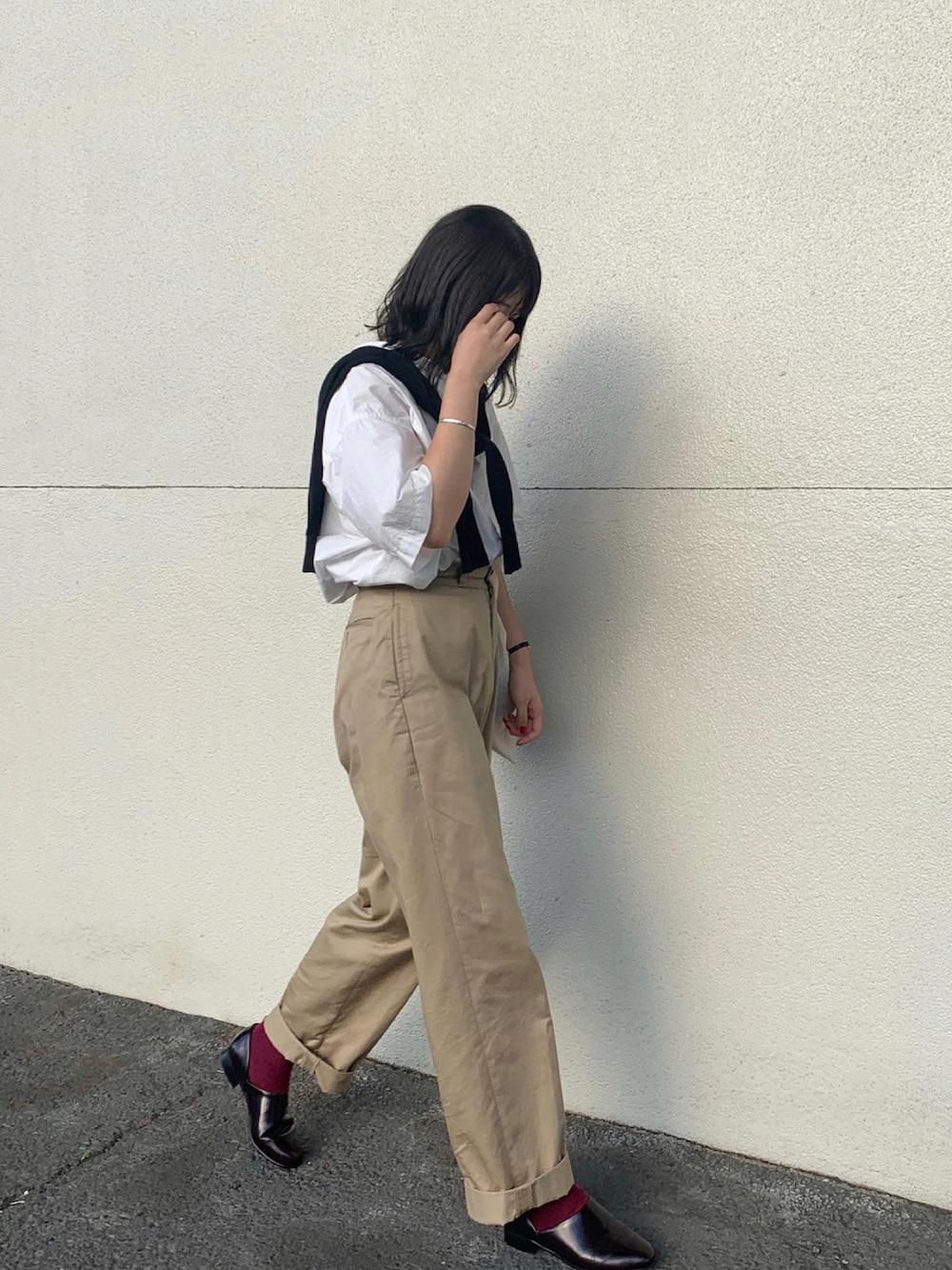 おはようございます☀️ いつも見てくれてありがとうございますっ!! ワードロープに1つはあるチノパンに カーディガンの肩がけしたシャツで ちょっと上品目に。 足元はキレイにスポックシューズで いい赤のワンポイントがまたいいです! インスタもやってます↓ @flower__530 🌼