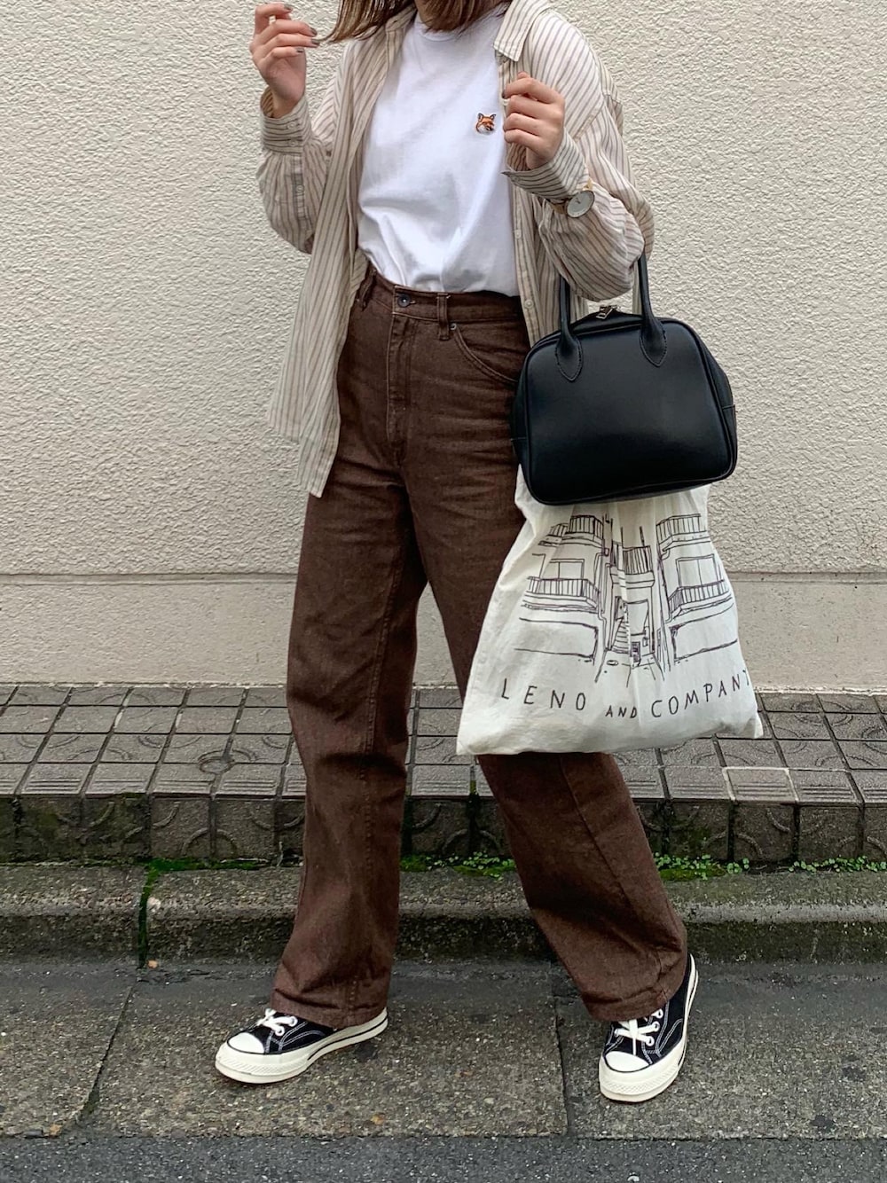 おはようございます☀️ いつも見てくれてありがとうございますっ!! maison kitsuneにUのシャツを羽織って ストレートなデニムでカジュアルさを◎ 色味が秋らしくて可愛くて お気に入りのコーデです〜♡ インスタもやってます↓ @flower__530 🌼