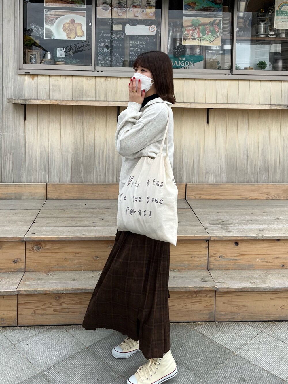おはなのスニーカー「CONVERSE:ALL STAR 100 ハイカットスニーカー」を使ったコーディネート