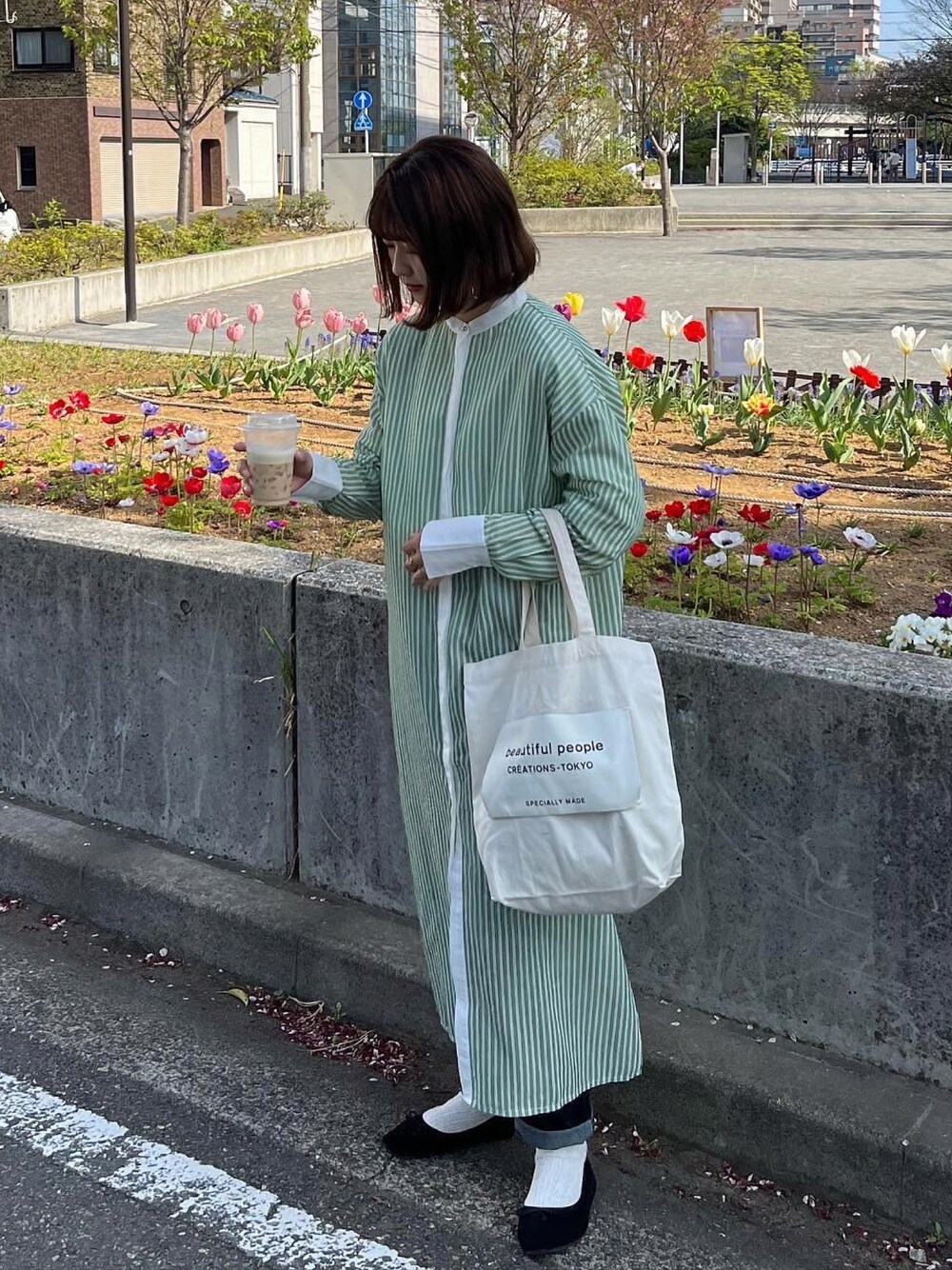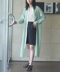 おはようございます!! いつも見てくれてありがとうございます😊 ストライプの緑ワンピースで春らしく。 シアー素材で透け感にデニムがまた可愛いです♡ Instagram▷▶︎▷ @flower__530