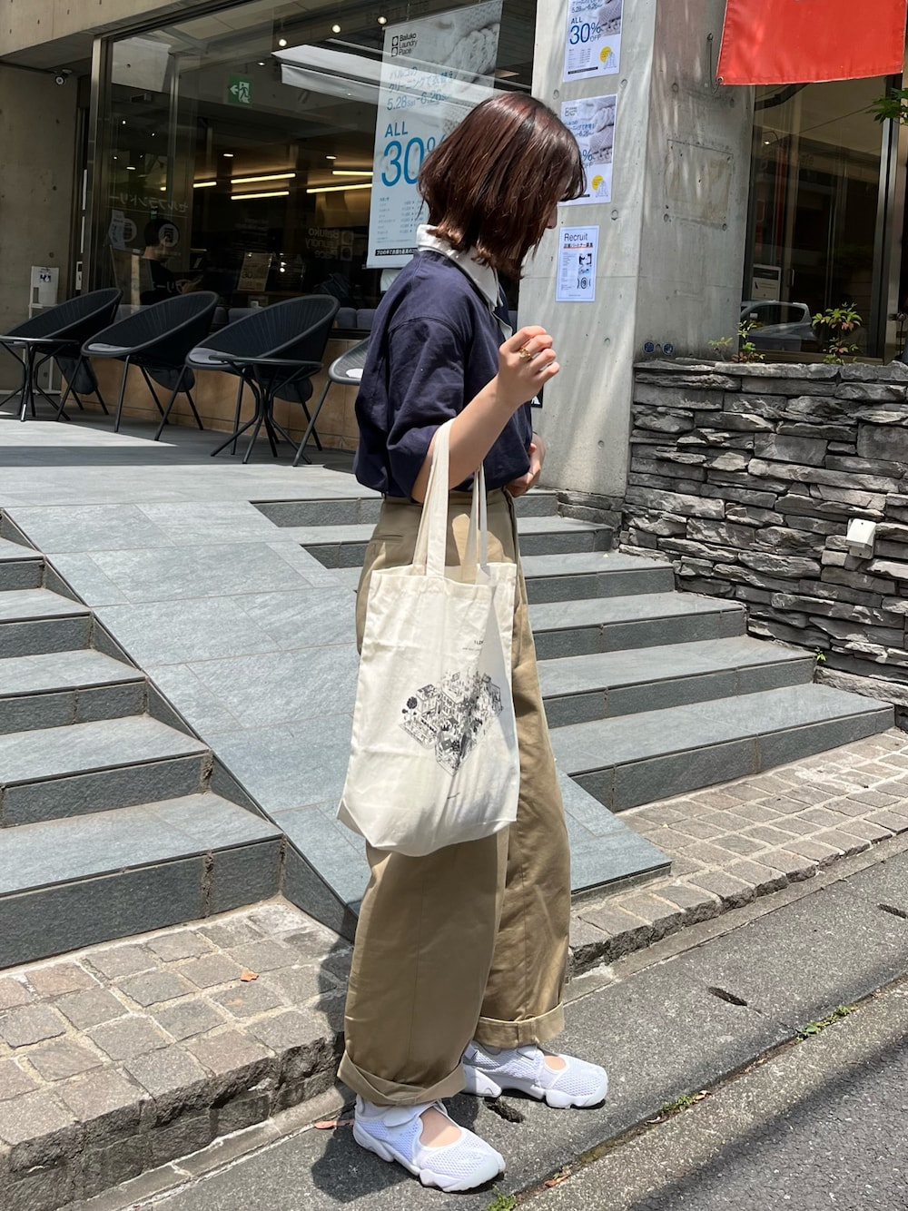 おはようございます!! いつも見てくれてありがとうございます😊 ネイビーとベージュの組み合わせが可愛すぎる。 足元は久しぶりのエアリフト◎ Instagram▷▶︎▷ @flower__530