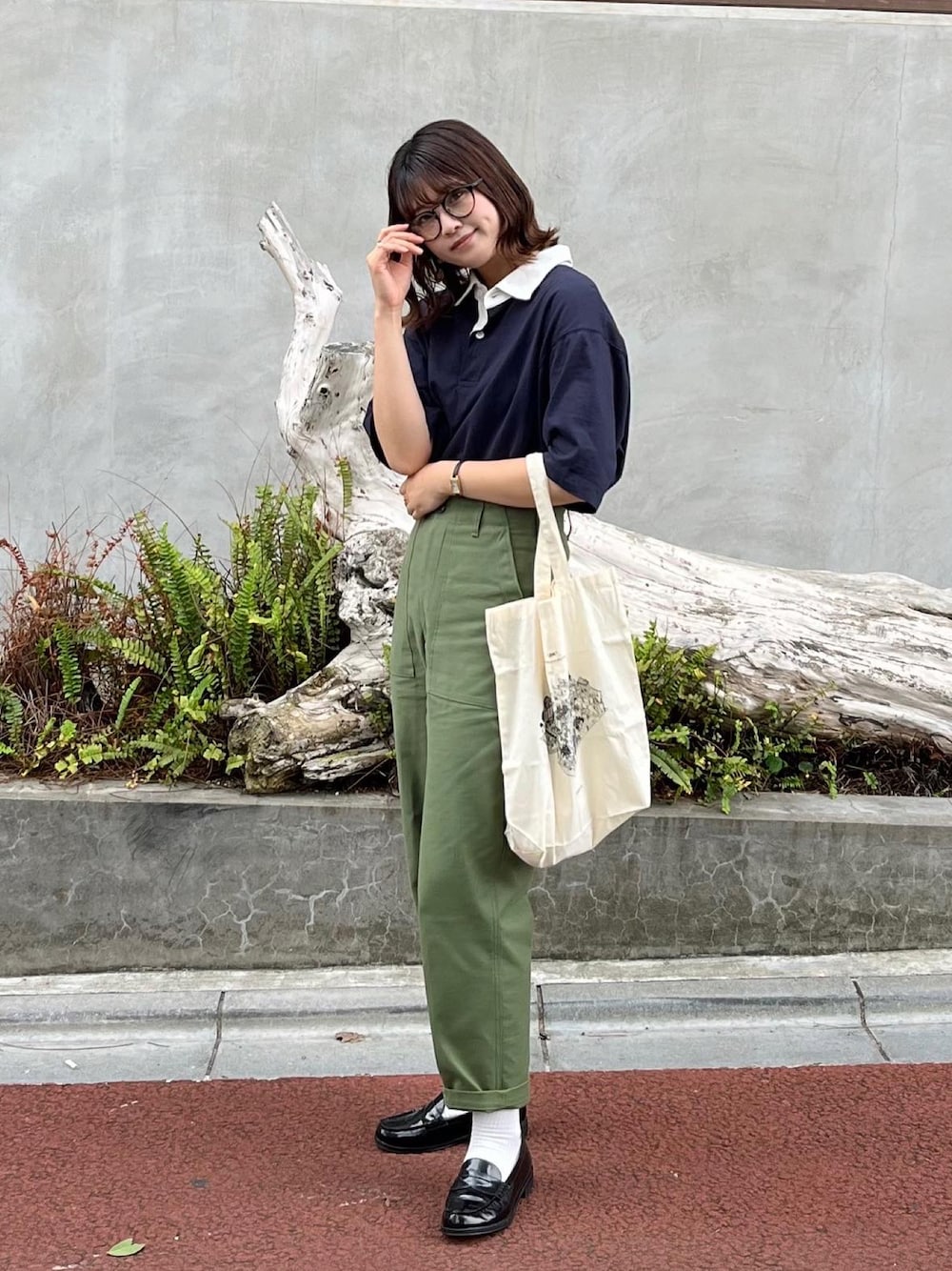 おはなのポロシャツを使ったコーディネート
