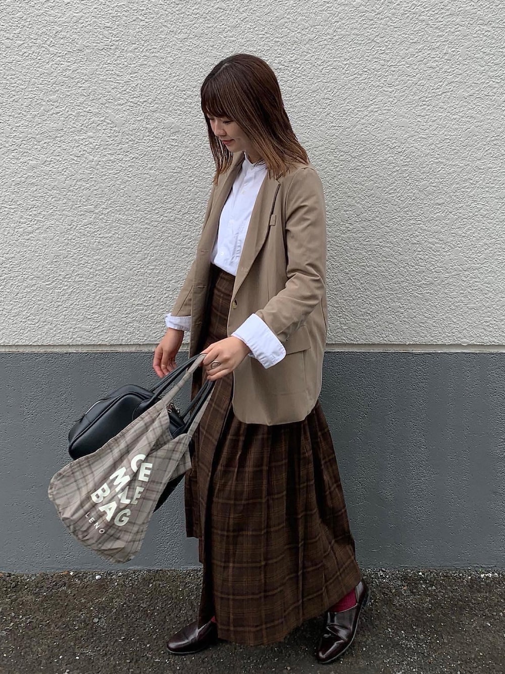 おはようございます!! いつも見てくれてありがとうございます😊 ジャケットコーデ◎プリーツスカートにシャツをタックイン◎ ハイウエスト効果を出してジャケットでしめる。、 Instagram▷▶︎▷ @flower__530