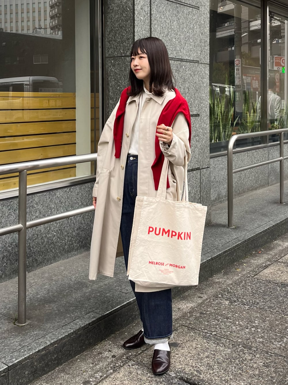色味のバランスが絶妙に可愛い♡ デニムに白ニットも可愛いし、白のコートに 真っ赤なカーディガンを肩掛けするのがツボ◎ Instagram▷▶︎▷ @flower__530