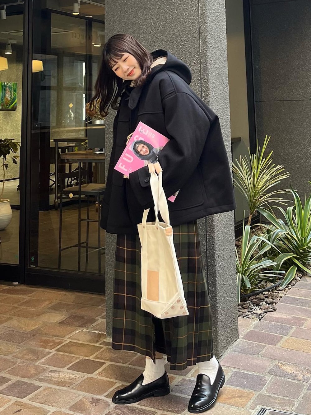 ショート丈のダッフルをチェックのスカートに合わせて 冬らしいコーデにしました!!オーバーサイズが また女の子らしくて可愛いっ!!♡ Instagram▷▶︎▷ @flower__530