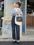 休日は春らしくデニムにストライプシャツで勝負👔 バッグはアクセントに2個持ちしたよっ!!