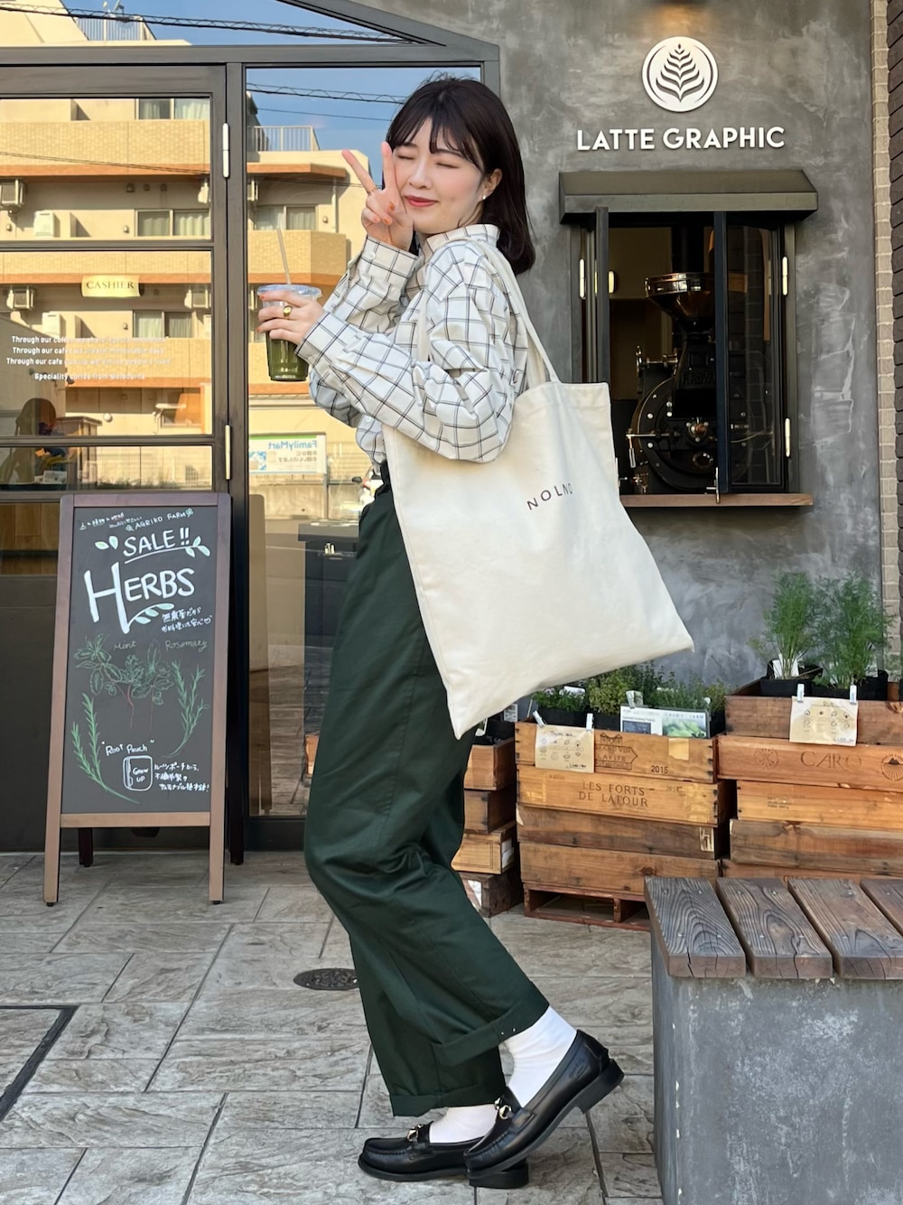 グリーンのグルカパンツにめちゃくちゃに可愛いシャツをプラスして明るい印象に🙆‍♀️‎🤍