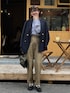 ジャケットをサラリと羽織ってオトナ女子👔 ベージュのチノにストライプシャツもドンピシャ◎