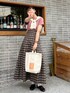 ユニクロのピンクTシャツとチェックは 相性抜群でめちゃくちゃ可愛いの🍑 肩掛けを取り入れたのもポイントです◎