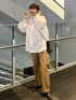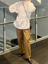 秋の淡色コーデ🍁🍂 シルエットが綺麗なパンツにボリュームがあるブラウスがよく合う!!